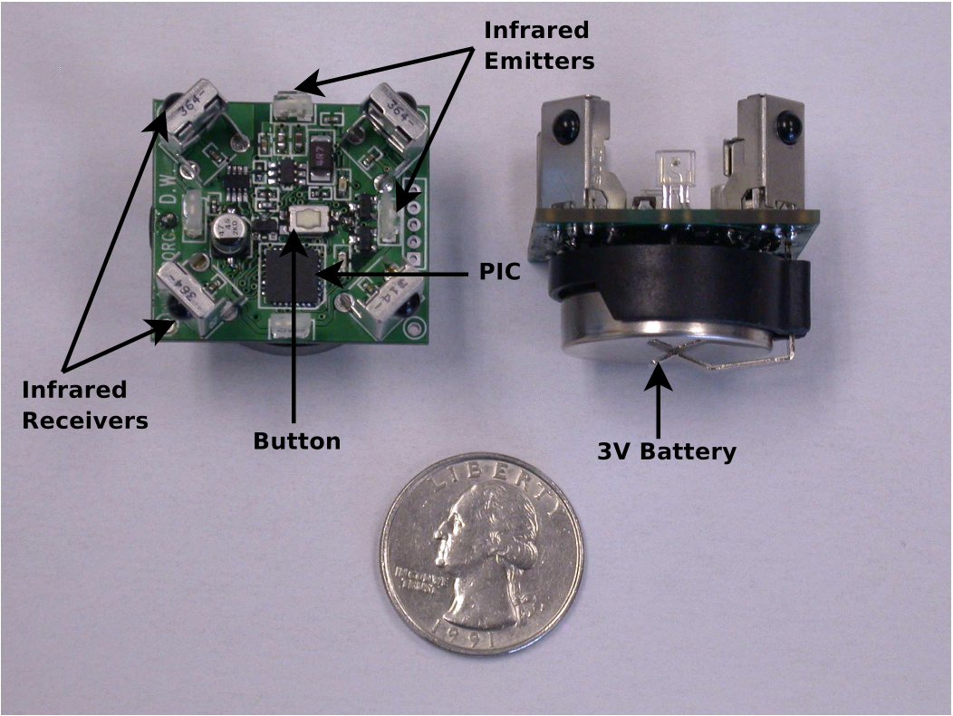 Along with simulation, we also conducted a study of "physical path planning" using a real network of embedded nodes. The idea was to use a pervasive network, or swarm, of minimal computing, communicating, and possibly sensing devices to plan paths for mobile robots. Neither the network nodes, or the mobile robots, need to know their positions or build any kind of map. In this type of physical path planning, the embedded nodes act as vertices and communication links represent unit-cost edges. For this study we implemented a new hardware platform, the Gnats. The simplicity of the platform made it inexpensive (less than $30), allowing us to conduct some of the largest experiments to date. |